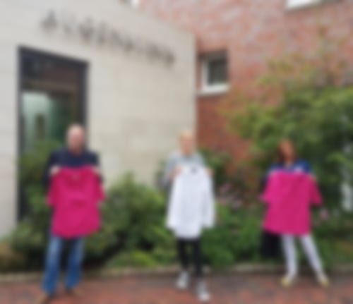 Über eine erneute Spende von Arbeitskleidung freute sich Ralf Düesmann, 1. Vorsitzender der Ahauser Nothilfe. Die Mitarbeiterinnen und Mitarbeiter des Praxis- und Klinikverbunds Augenärzte Gerl & Kollegen tauschten kürzlich ihre schwarzen Hosen und pinkfarbenen Kasacks gegen eine neue Farbkombination (weiß/blau) aus. Melina Rauer (Marketing, Mitte) und Stefanie Dirksen (MFA, rechts) übergaben stellvertretend für die Klinikleitung die Kleiderspende, die für ein Krankenhaus im rumänischen Timisoara bestimmt ist.